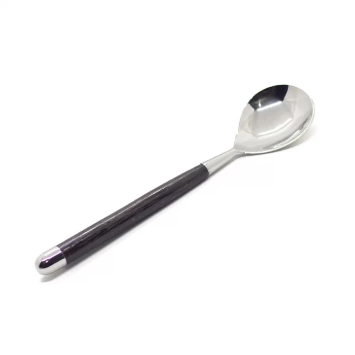 The stainless steel finish perfectly complements the Kithul wood, creating a harmonious blend of materials that is both durable and visually appealing. This design is ideal for those who appreciate refined aesthetics in their tableware.